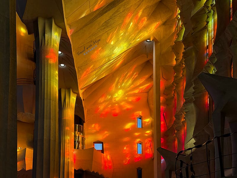 ❙ 聖家堂內部光線:早上冷色調 ( 藍綠色 )、下午暖色調 ( 紅黃色 )